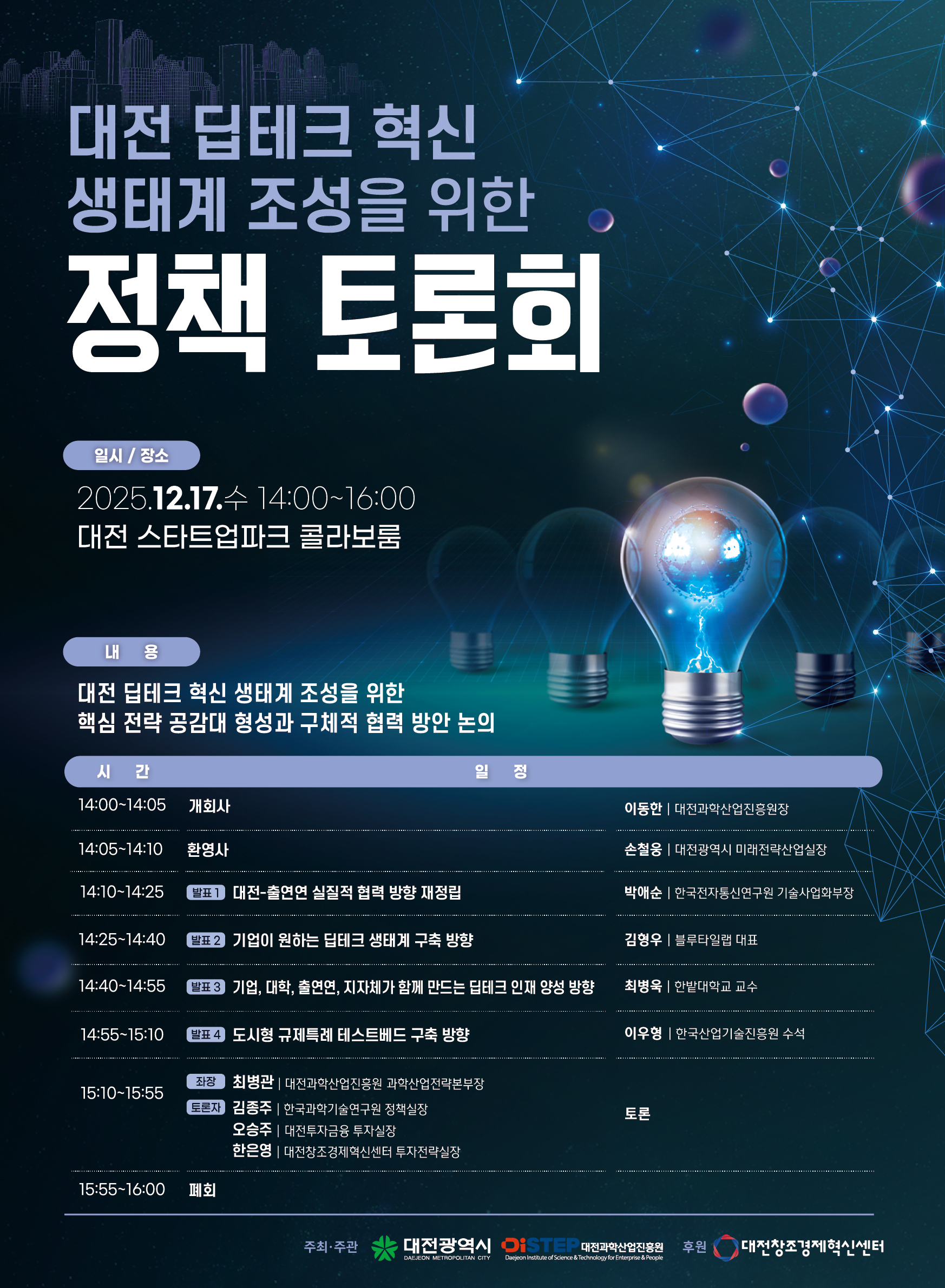 대전 딥테크 혁신 생태계 조성을 위한 정책 토론회