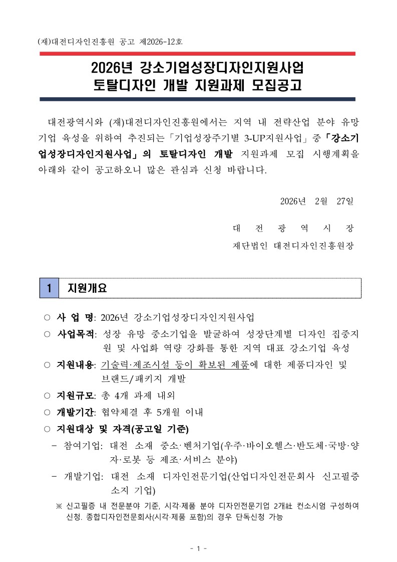 2026년 강소기업성장디자인지원사업 토탈디자인 개발 과제 모집공고