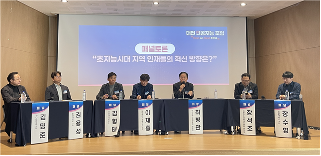 본원 최병관 본부장이 좌장을 맡은 패널 토론에서는 초지능 시대 지역 인재들의 혁신 방향에 대한 열띤 토론이 이어졌습니다.