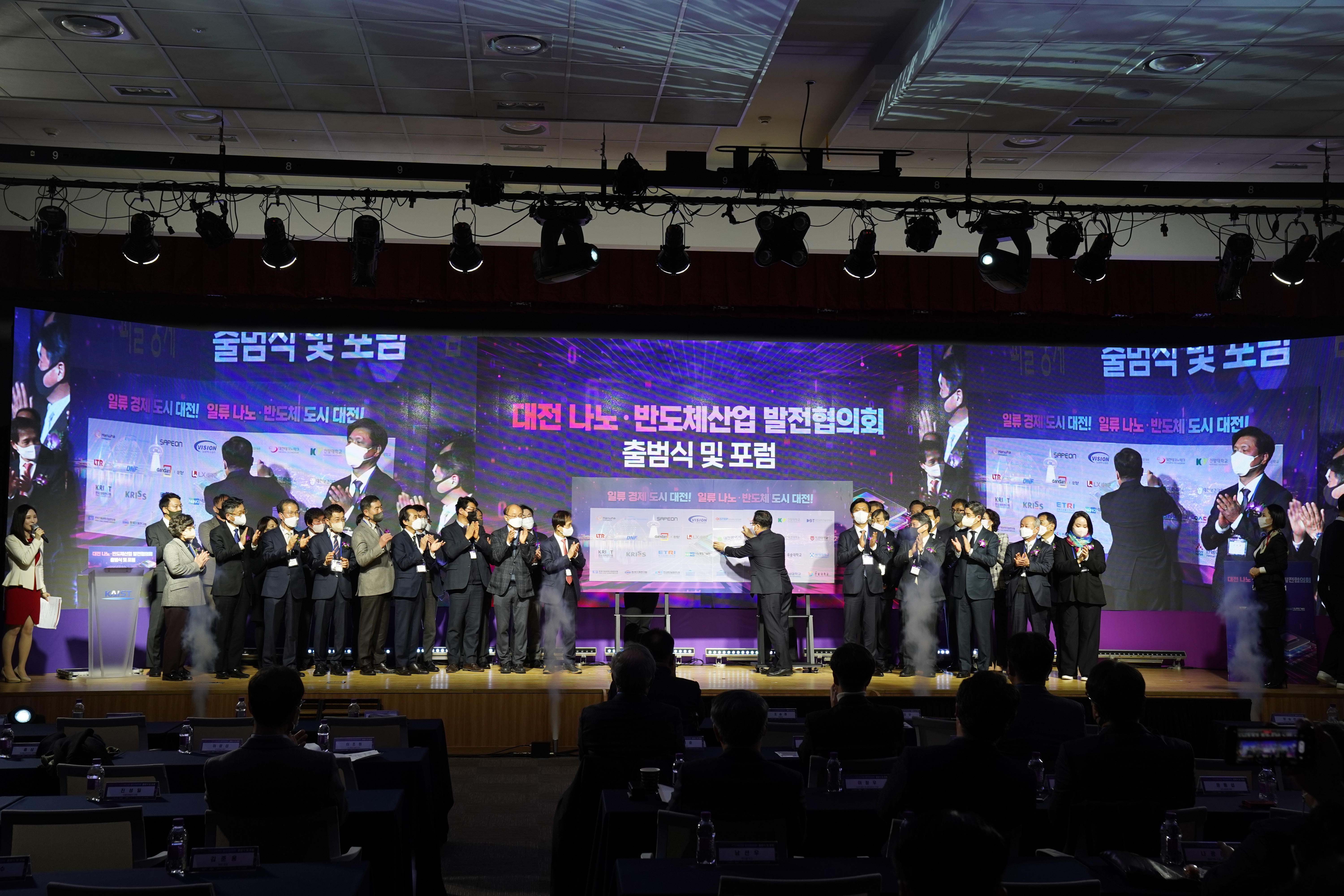 대전광역시와 대전과학산업진흥원을 비롯한 출연연구기관, 지역대학, 지역기업의 대전 나노반도체산업 육성을 위한 공동협력의 의지를 담은 세레모니가 이어졌습니다.