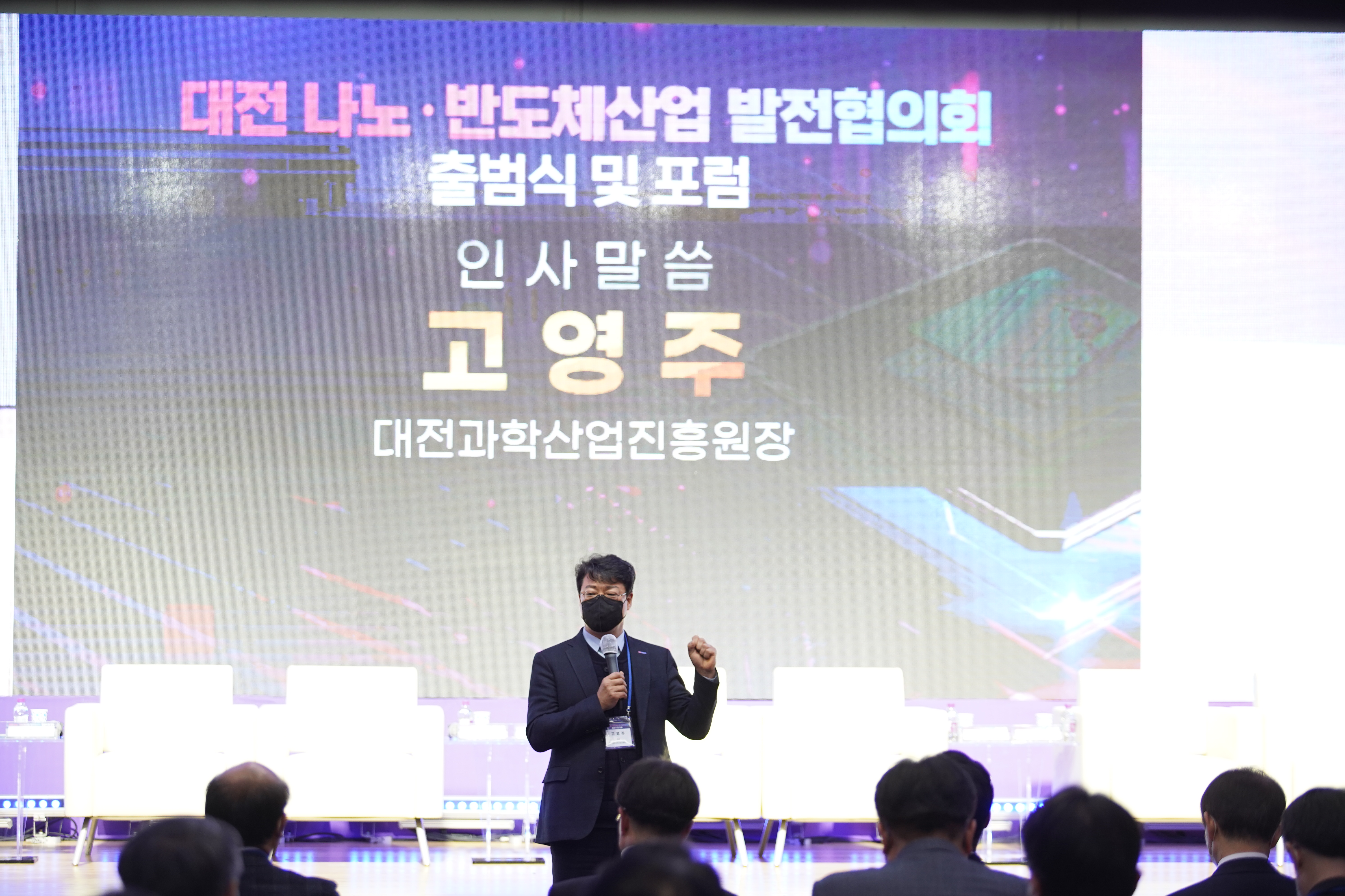 포럼 개최를 알리는 인사말씀에서 대전과학산업진흥원 고영주 원장은 대전 나노반도체산업 육성을 위해 대전과학산업진흥원을 비롯한 지역 출연기관들이 다함께 힘을 합쳐 적극적인 지원의 노력을 다할 것임을 알렸습니다.