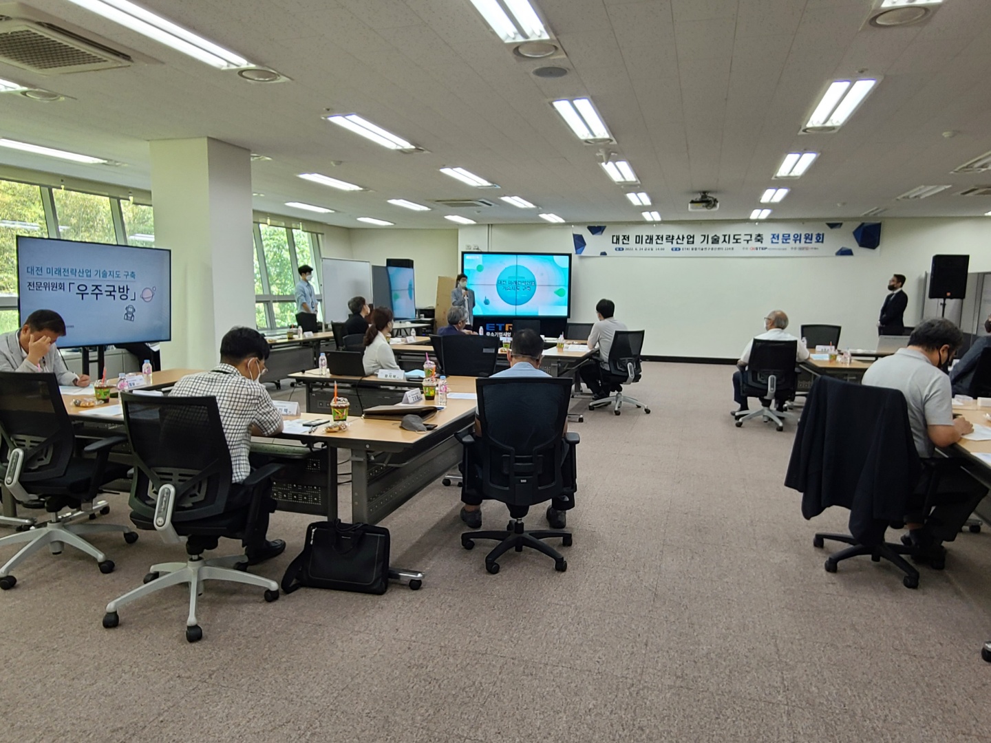 지난 6월 24일(금) 대전과학산업진흥원은 대덕특구의 기술과 인적 자산을 활용한 지역 미래산업을 육성하고 지속적인 혁신성장과 글로벌 혁신생태계로 발전하기 위한 대전만의 최적화된 미래전략산업 기술지도를 구축하기 위하여 「대전 미래전략산업 기술지도 구축」1차 전문위원회를 개최하였다.