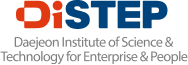 The wordmark of the Daejeon Institute of Science & Technology for Enterprise & People (DiSTEP) is created by combining the first letters of each word.