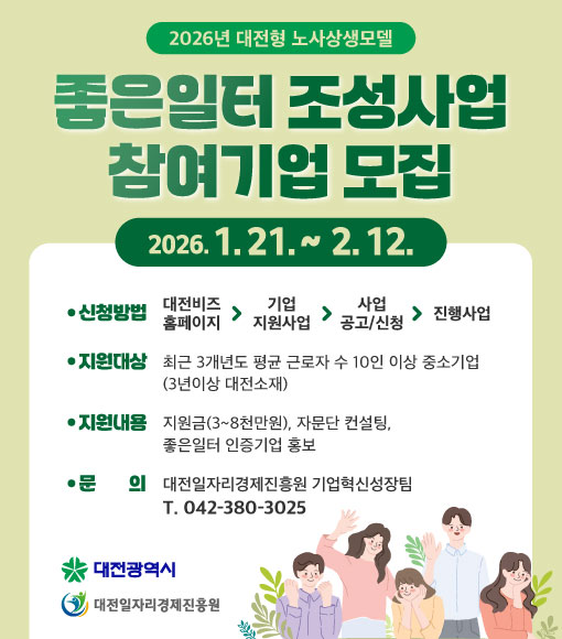 2026년 대전형 노사상생모델 좋은일터 조성사업 참여기업 모집
