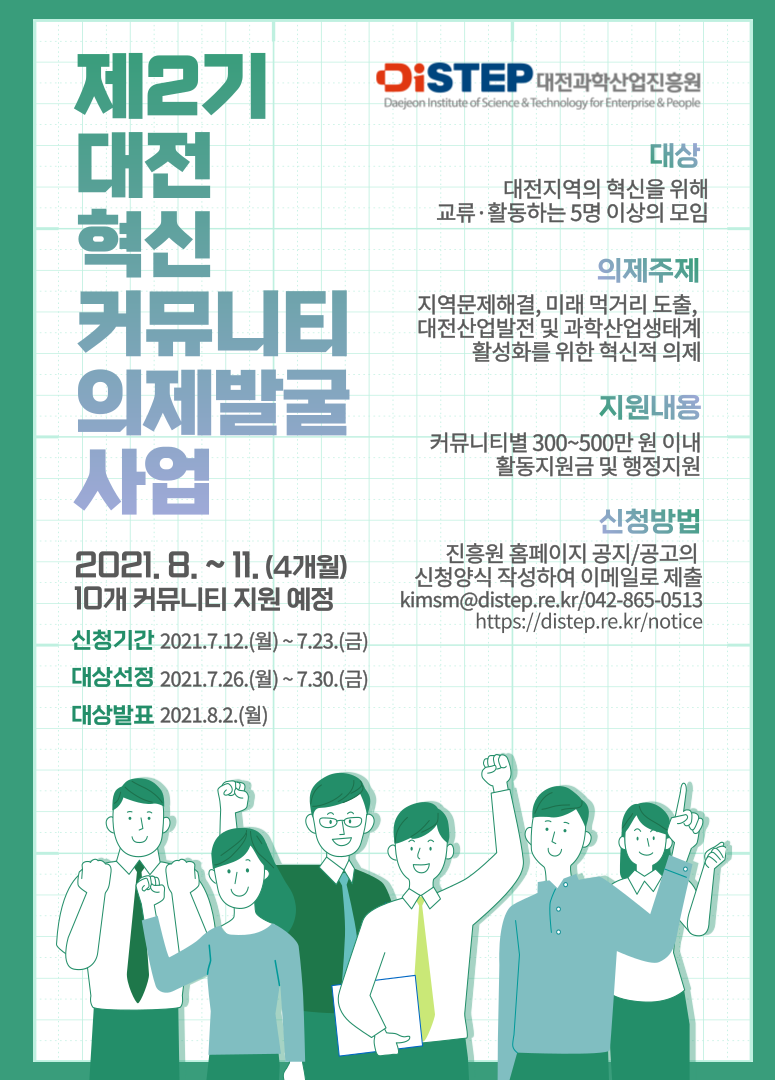 o 대 상 : 대전지역의 산업발전 및 생태계 활성화에 관심이 많은 혁신커뮤니티- 최소 5명 이상으로 구성된 모임