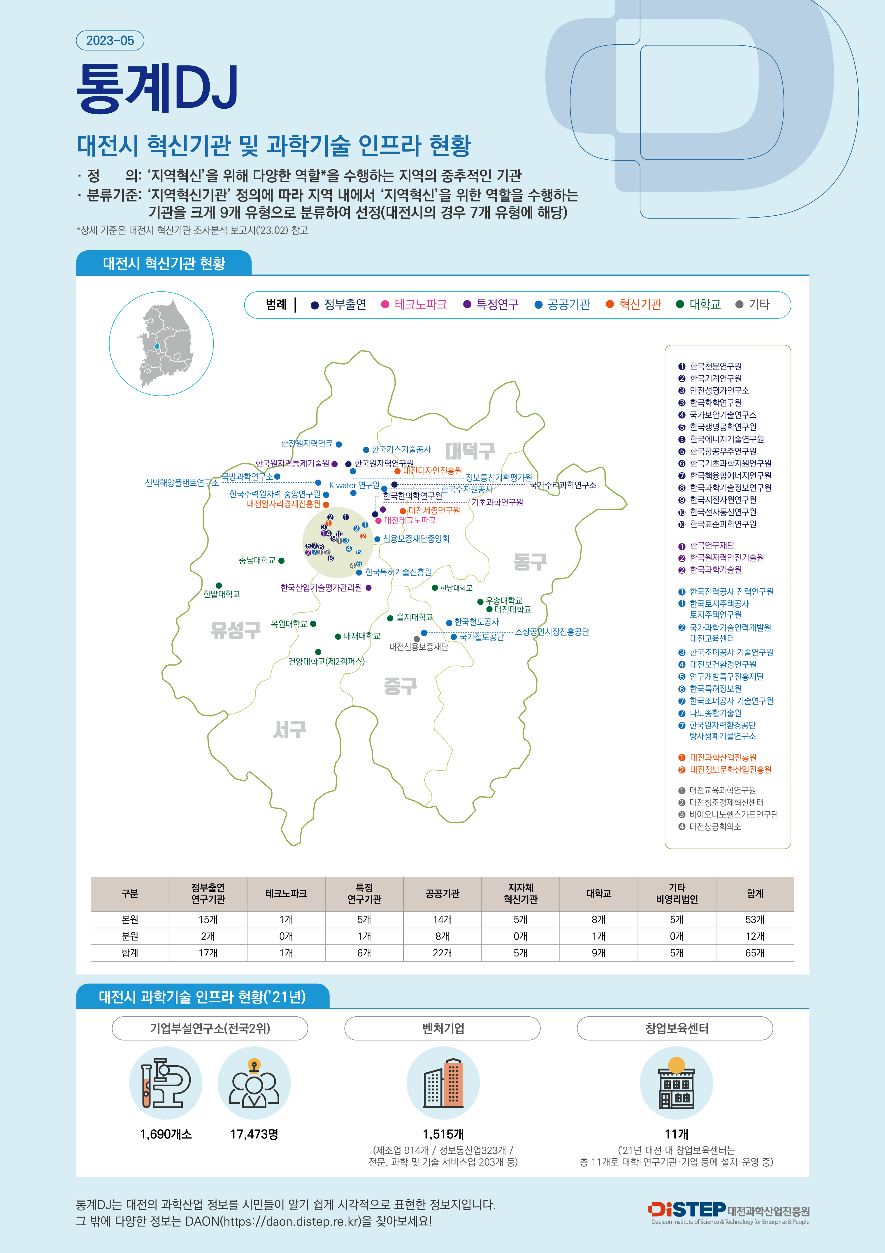 [통계DJ 2023-03호] 대전시 혁신기관 및 과학기술 인프라 현황